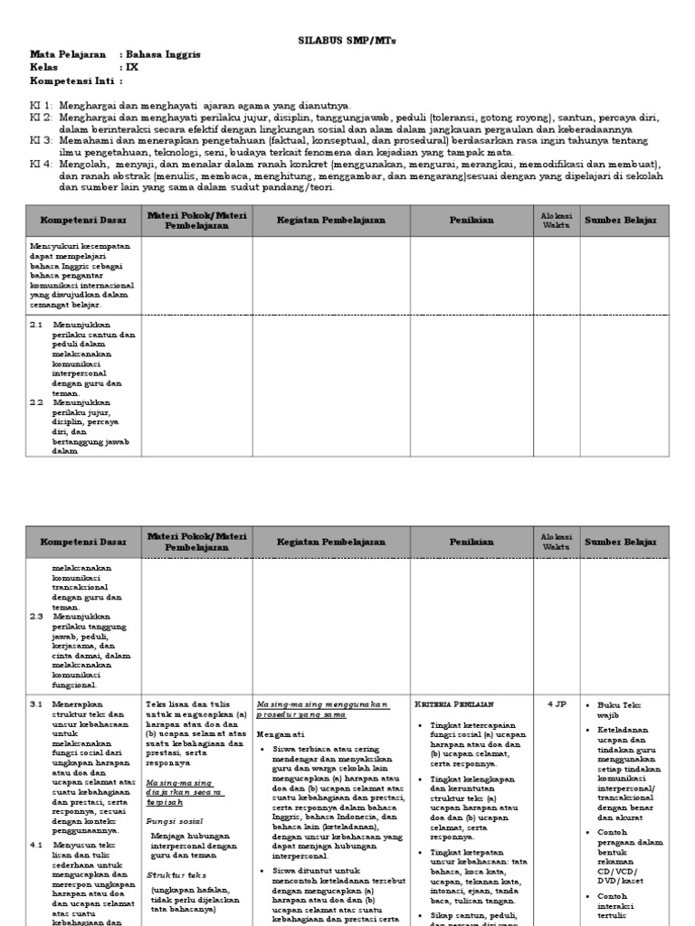 Contoh Silabus Structure Bahasa Inggris Smp / Silabus Bahasa Inggris SMP/MTs Kelas 8 Semester Ganjil ... : Percakapan dalam bahasa inggris untuk dua orang tentang “holiday” 9 ucapan selamat hari ibu (mother’s day) dalam bahasa inggris lengkap beserta artinya;